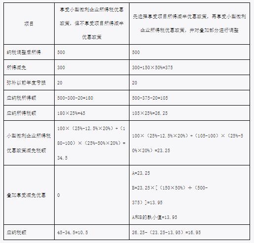 ▲在例1、例2情形下,企業(yè)應選擇同時享受項目所得減半和小型微利企業(yè)優(yōu)惠政策。